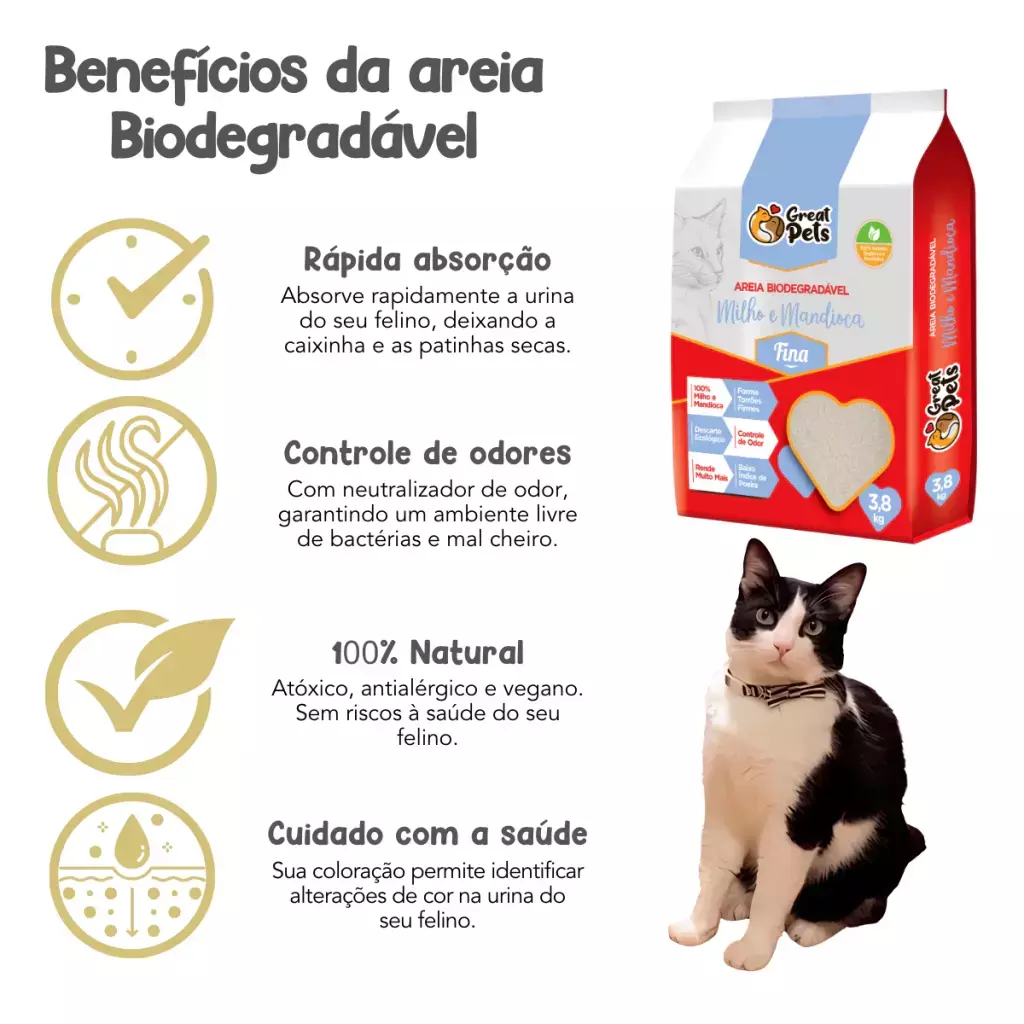 - Além de formar torrões firmes, proporciona fácil limpeza da caixa;