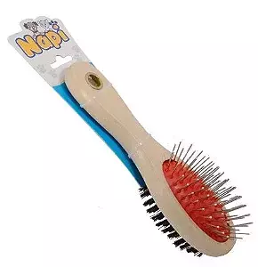 A Escova Dupla Cabo Madeira é indicada para cães, contém cerdas de Bolinha que massageiam a pelagem de seu pet deixando brilhante e bonita. Possui pontas arredondadas delicadas e macias para cuidar da pele de seu amigo. As bolinhas ajudam na tração dos pelos e ajuda a desembaraçar todos os fios de modo uniforme. Escova com cerdas de aço, cabo de madeira e bolinhas na ponta é ideal para animais com pelagem curta, média e longa. Disponível em três tamanhos diferentes.