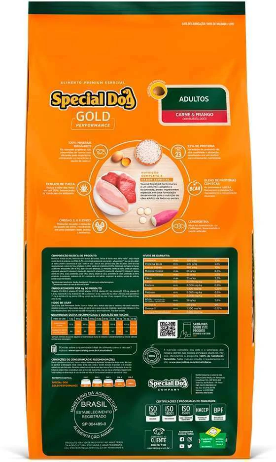 A Ração Special Dog Gold Premium Especial Frango e Carne para Cães Adultos é um alimento Premium Especial, formulado com ingredientes selecionados que garantem melhor performance dos cães. Com batata-doce, BCAA e Whey Protein sem lactose, auxiliam no fortalecimento e na recuperação muscular dos cães.